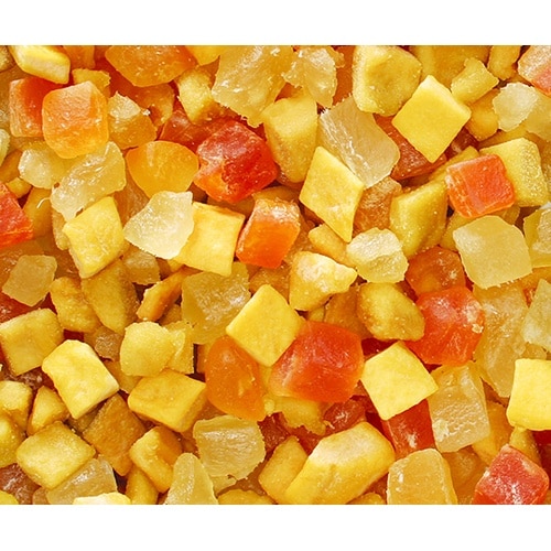 パパイヤ・グアバ・パイナップルのドライフルーツです。果物に含まれたタンパクを分解する酵素が消化を助け毛球症を防ぎます。糞尿臭を抑えます。 |