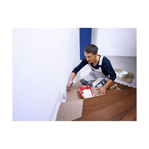 しなやかなクレープ紙マスキングテープを使用しているため使いやすく、ワンステップで簡単に広範囲を養生できます。塗料が液だれしづらく、糊残りしにくい製品です。幅木周りや床面の塗装養生に。 |