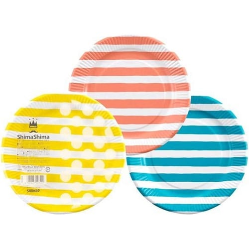 しま模様がかわいい使い捨てのペーパープレートです。アウトドアや行楽、ピクニックなどに便利です。ピンク、イエロー、ブルーの3色アソートです。 |