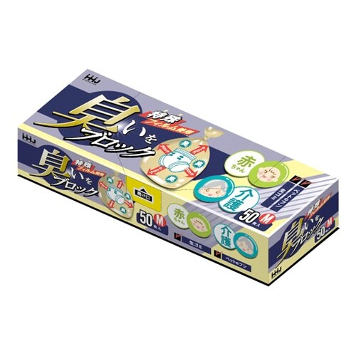 イヤな臭いを強力にブロックするポリ袋50枚入りのボックスです。5層構造の真ん中に臭いを通さない特殊フィルムを挟んでいるので、臭いが外に漏れるのを防ぎます。 |