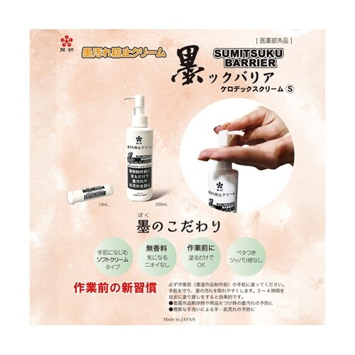 書画制作作前に塗るだけで、墨汚れや肌荒れを防止します。 |