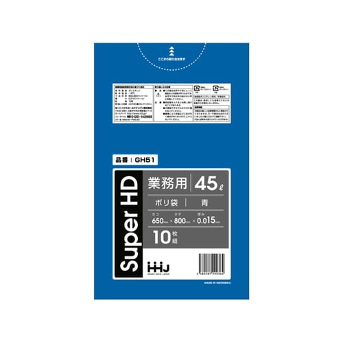 レジ袋のように、カサカサした感触が特徴の青色のゴミ袋です。一枚あたり内容量は45Lです。引っ張りに強いです。10枚入りです。 |