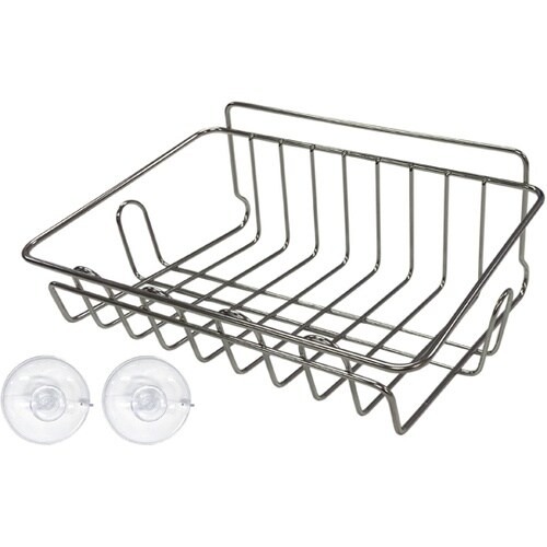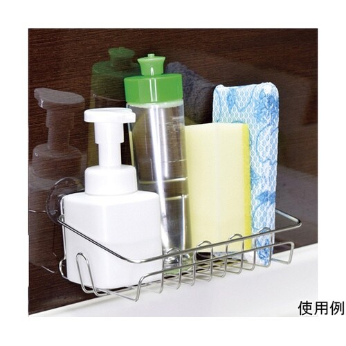 シンク周りに取付可能な吸盤付きです。サビにくいステンレス製です。スポンジ、たわしなどシンク小物の収納に向いてます。 |