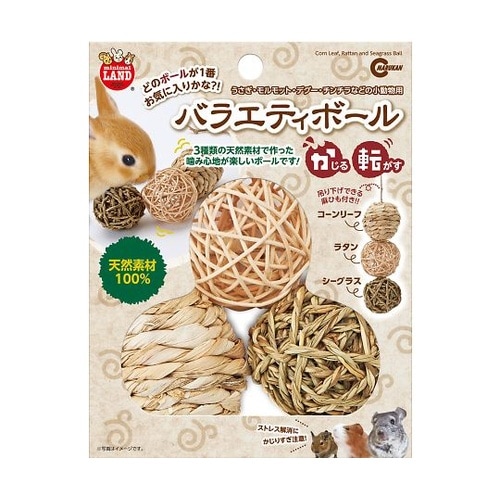 3種類の天然素材で作った噛み心地が楽しいボールです。 |