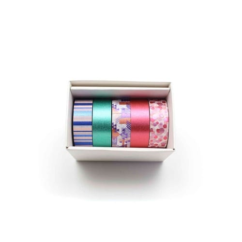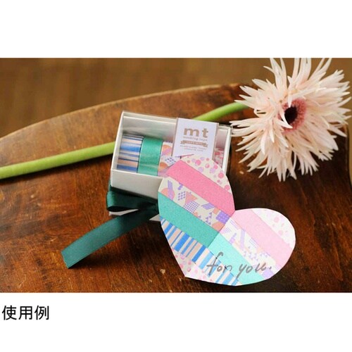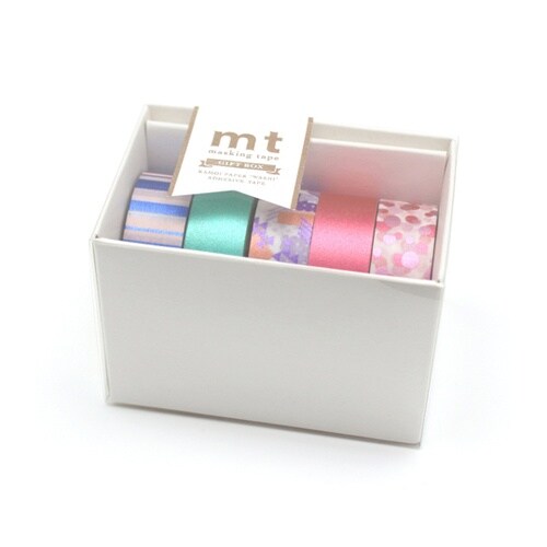 手でちぎって、貼って、はがせるmt(エムティー)シリーズのマスキングテープです。印刷インキに金属粉を加え、奥行きのある光沢感を表現した高輝度タイプ5種セットです。 |