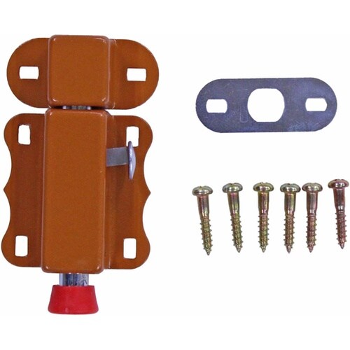 木製扉や家具の簡易な戸締りに施錠、開錠の操作がワンタッチで便利木製扉(主に開き戸)や勝手口の簡易戸締りに取り付けの際、木部の割れやネジの破損を防ぐためキリで下穴を開けてください。