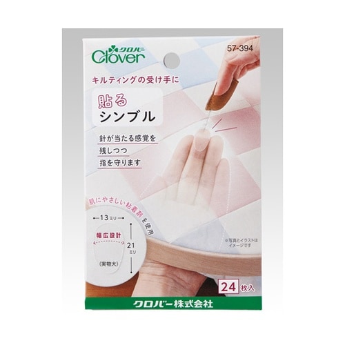 キルティングのとき、受け手側の指先に貼る、シールタイプのシンブル。針先が当たる感覚を感じながら針を返すことができる。粘着力がなくなるまで、数回繰り返して使える。 |
