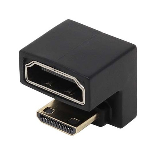 HDMIミニコネクタの向きを180度反転させ、HDMIコネクタに変換するアダプタです。モバイルモニタでコネクタ周りが狭い場合に好適です。 |