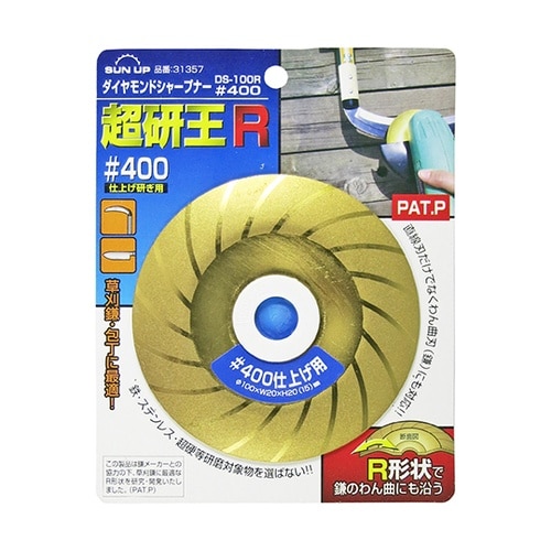 草刈鎌・包丁の研磨、鉄・ステンレス・超硬工具・焼入鋼・ガラス・難削材などの研磨に本品はR形状(ゆるやかな碗型)の為、直線的な刃(包丁など)だけでなく、わん曲した刃(鎌など)にも対応します。 |