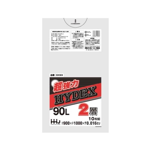 ハウスホールド ゴミ袋 90L 100×90cm 厚さ0.016mm 10枚入 半透明 GX93 GX93 1袋 A06F-3047