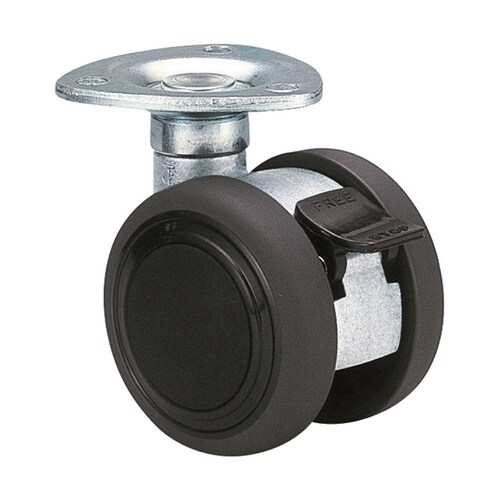 双輪であるため高い旋回能力を発揮します。OA機器、情報機器、ディスプレイ用什器、医療機器など。 |
