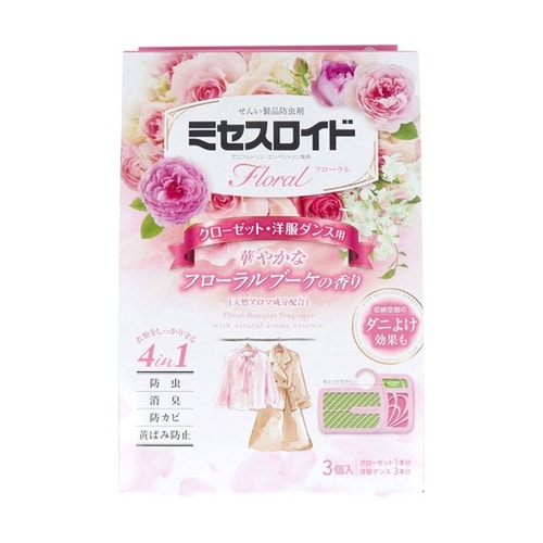 ミセスロイドフローラル クローゼット・洋服ダンス用 1年防虫 フローラルブーケの香り 3個入 68−1988−79 1個