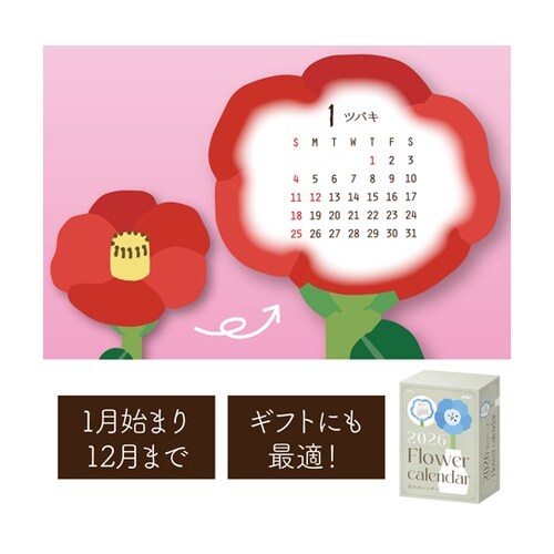 お花が主役!デスクが華やぐ花瓶型カレンダー!デスクに飾るだけで気分がパッと明るくなる、花瓶型の卓上カレンダーです。ツバキ・アジサイ・ひまわりなど、月ごとに変わる12種類の季節の花が楽しめます。 |