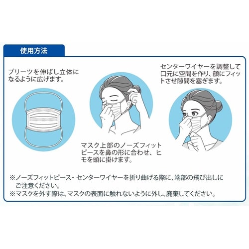 オメガ型立体設計。樹脂素材のノーズフィットピースにより鼻のラインにぴったり合わせられます。マスクの中央にワイヤーを入れることで、口元に立体設計ができ、会話がしやすいです。 |