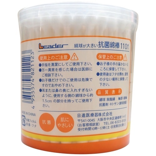日進医療器 リーダー綿球が大きい抗菌綿棒 1個(110本入) 69−5714−02 1個 A06F-6097
