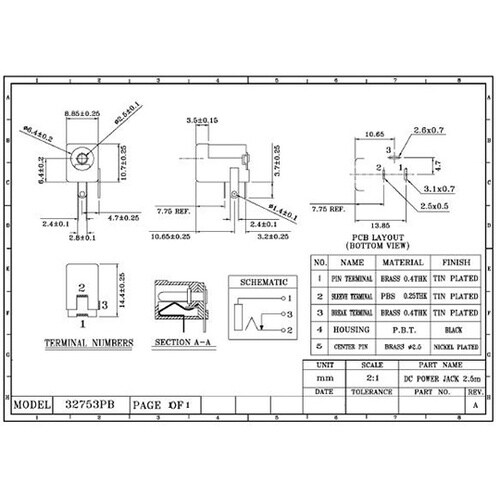 コネクタの形態:2.5mmジャック | 色:黒 | 形式:ストレート | 端子部処理:− | 材質:プラスチック | 備考:基板取付 | 単位:1個