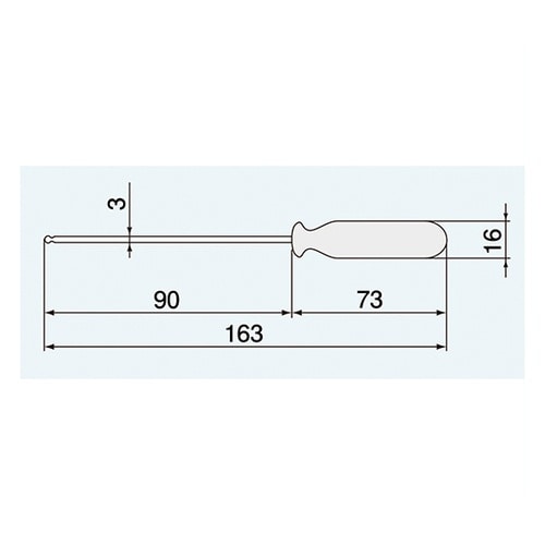 対辺:3mm | 全長:163mm | 軸長:90mm | グリップ径:16mm | 重量:20g | 材質:軸・クロムモリブデン鋼 | 単位:1本