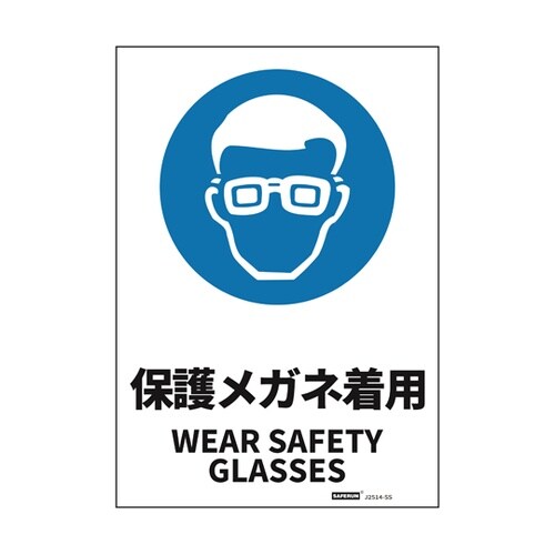 セーフラン安全用品 安全標識ステッカー 保護メガネ着用 178x254mm J2514−SS J2514−SS 1枚 A06F-7057
