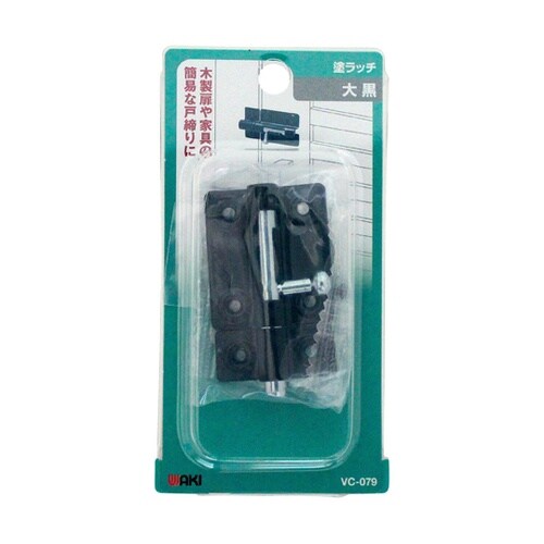 木製扉や家具の簡易な戸締りに取り付けの適用範囲が広く、操作しやすい木製扉(主に開き戸)や勝手口の簡易戸締りに取り付けの際、木部の割れやネジの破損を防ぐためキリで下穴を開けてください。 |