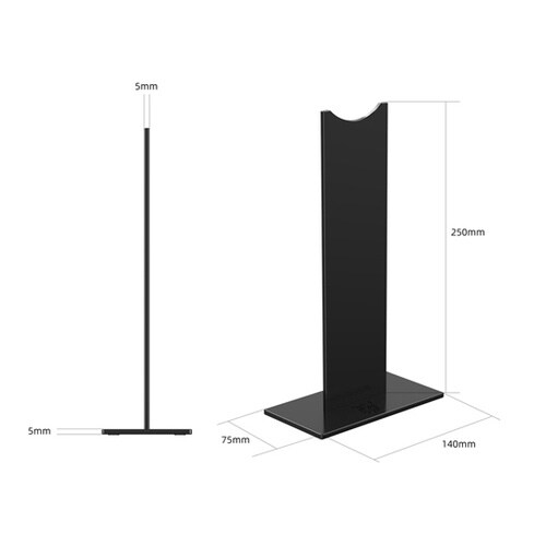 ワンステップで簡単に組み立てられるヘッドフォンスタンドです。使わないときもワンステップで分解ができ、省スペースに保管できます。黒色で同色のキーボード、マウスパッドなどに合わせやすいです。 |