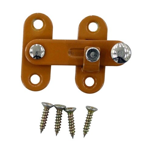 木製扉や家具の簡易な戸締りに受座のネジを締め付けるとバーが固定されます木製扉(主に開き戸)や家具の簡易戸締りに取り付けの際、木部の割れやネジの破損を防ぐためキリで下穴を開けてください。 |