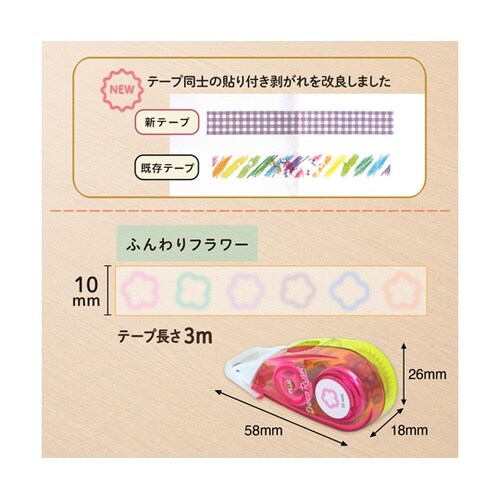 テープ幅10mmタイプ。(上下余白あり。印刷幅は8.8mm)一般的なマステよりもやや細くコンパクトな手帳にも太過ぎないテープ幅