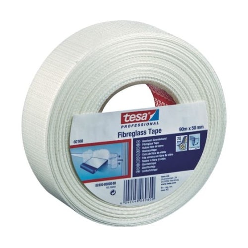 非常に強度の強いグラスファイバー基材です。粘着剤付きのため作業性が良好です。石膏ボードジョイント部の亀裂防止、キズや小さな穴の補修用です。 |