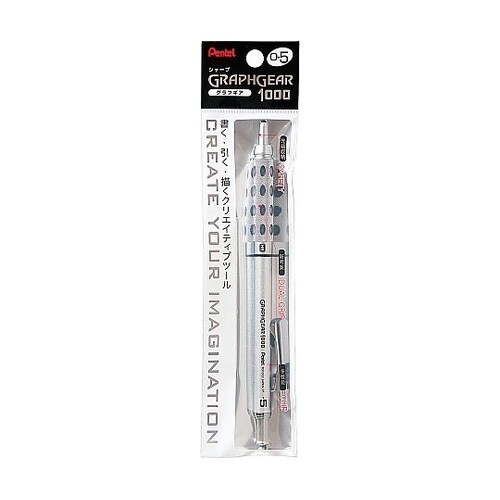 先端部分を収納できる安心設計。グリップ部はゴムグリップとローレット加工を施した新考案のデュアルグリップ採用。クリップは筆記時は先端がボディに半収納される新設計。芯硬度表示窓付き。 |