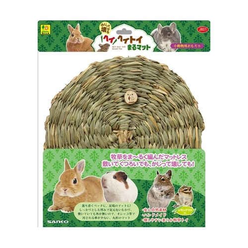 落ち着くベッドや足場のマットに!しっかりした厚みで足元をいたわり、敷いていても角が無いので、オシッコ等で汚されることが少ない、丸形のマットです。安心の自然素材をハンドメイド。壊しやすい柔らか牧草トイ。 |