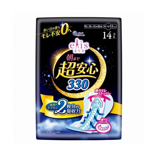 大王製紙 エリス 朝まで超安心330 特に多い日の夜用 羽つき 14枚 60−2882−33 1個 A06F-9341