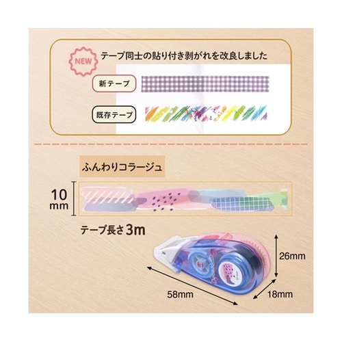 あきのこないシンプルさも意識しており、大人の女性が使いやすい上品なデザインとなっています。また、デコラッシュの長年の欠点であったテープ同士の張り付き剥がれを改善すべく、10周年目にして待望の「貼り付きにくい新テープ」の商品化を実現。