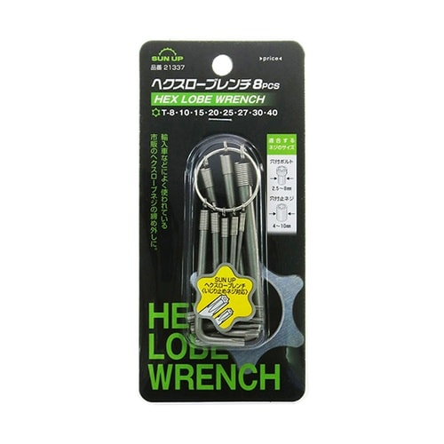 輸入車などに使われているヘクスローブネジの締め外しにカムアウトを抑え、空回りを未然に防止し確実な締めつけをします。使用頻度の高いサイズをセットに。 |