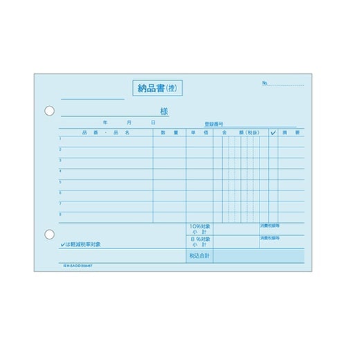 軽減税率制度に対応した、インボイスタイプの納品書です。軽減税率対象商品の区別は、チェックするだけで対応できます。納品書ごとに消費税計算できます。都度請求にも対応しています。 |