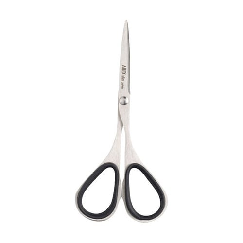 ペンケースや手帳のポケットにも収納できる、軽くて薄いスリムタイプのハサミです。ハンドル部のリングは、感触がソフトなエラストマー樹脂を使用し、やさしい指あたりになっています。 |