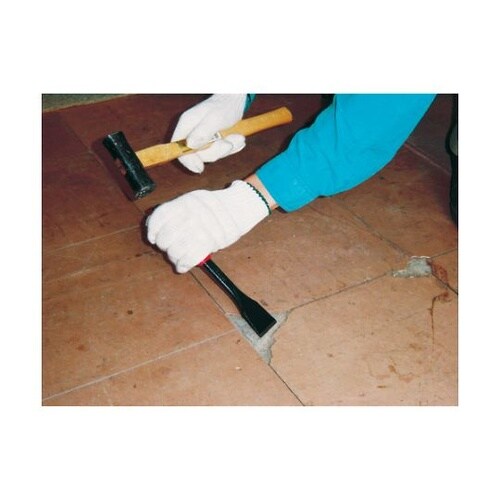 鋭い片刃、完全熱処理しています。安全ロープ取り付け穴付です。ソフトグリップ付きで手にやさしく、グリップエンドはハンマー等での打撃が可能です。パッキン、木材などのハツリ作業に。 |