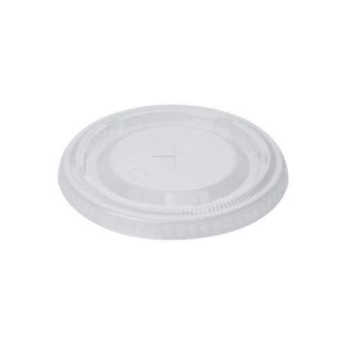 リサイクルPET使用の広口カップ用フタです。バツ穴が開いています。 |