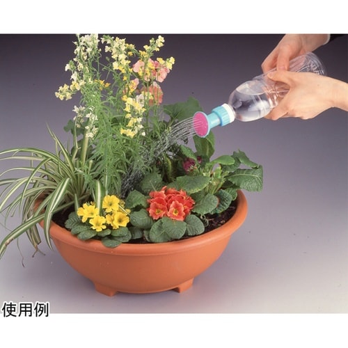ペットボトルに取り付けることで園芸用じょうろになります。ベランダ、テラスなどのミニ花壇の散水に便利です。レジャー、キャンプ、海水浴などにも便利です。 |