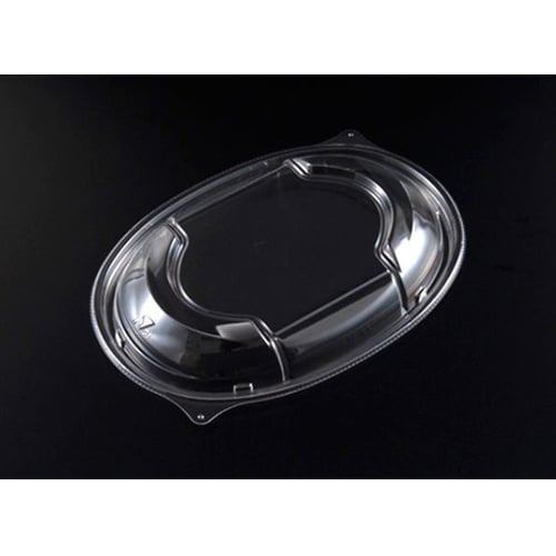 液漏れしにくい内嵌合蓋です。中身が入りすぎず、大きく見える楕円形状。業界初、A−PET糸尻成型で高質感。段積み陳列も可能です。※本体は別売り。