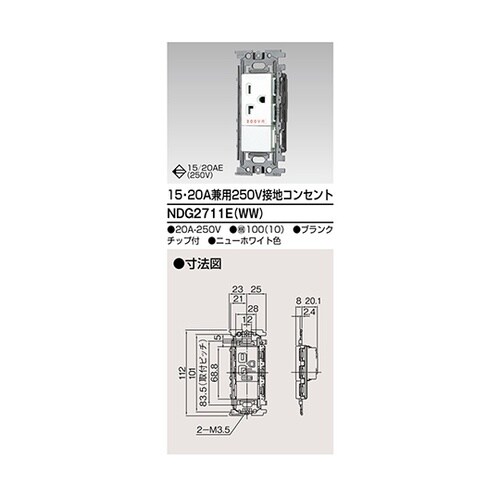 東芝 15・20A250V接地コン NDG2711E(WW) NDG2711E(WW) 1個 A06G-4077