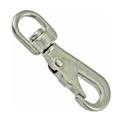 アイ部分が回転する事で、チェーン等のより戻しになります。スプリングフックにより、楽に開閉できます。チェーン、ワイヤー、ロープ等の連結に使用できます。 |