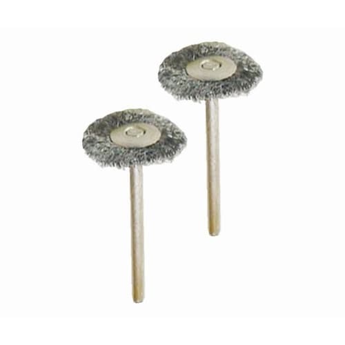 回転工具に取付けて研磨材を塗布し磨き、汚れ落としをするブラシです。各種金属商品のサビ落とし、ペンキ落とし、汚れ落とし、等に使用します。 |