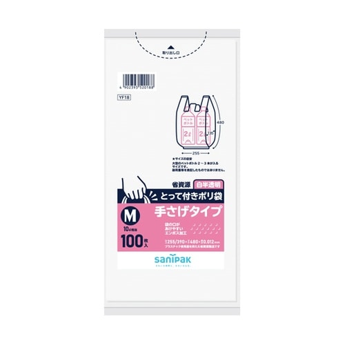 日本サニパック YF18 とって付きポリ袋エンボス(M)白半透明 100枚 YF18 1個 A06G-5116