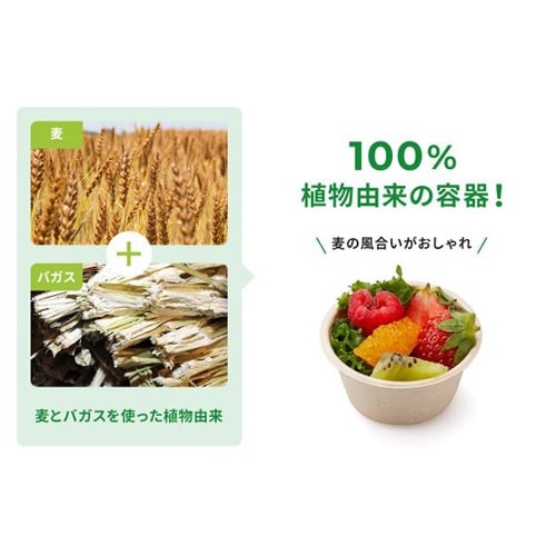 麦の非可食部とバガス(サトウキビの搾りかす)の混合素材からできた、植物由来の業務用・使い捨て小型カップです。 |