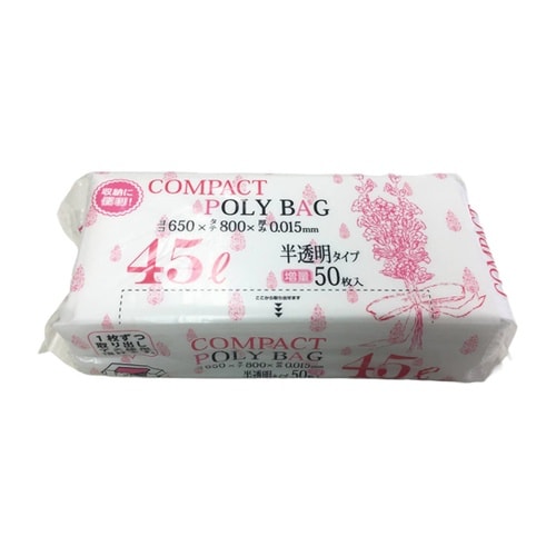 ハウスホールド ゴミ袋 コンパクトボックス 45L 80×65cm 厚さ0.015mm 50枚入 半透明 KJ40 KJ40 1袋 A06G-5439