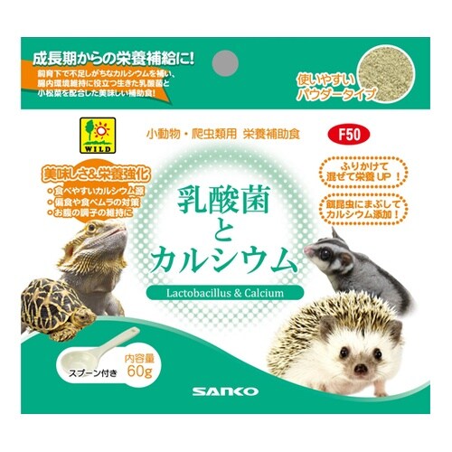 成長期からの栄養補給に!飼育下で不足しがちなカルシウムを補い、腸内環境維持に役立つ生きた乳酸菌と小松菜を配合した美味しい補助食です。 |