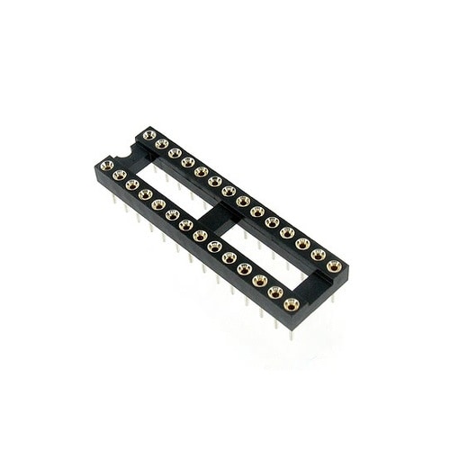 DIP(Dual In−Line Package)28ピン(0.3インチ幅)用丸ピンICソケットです。挿しやすく抜けにくく、板バネと比較すると信頼性が高いです。 |
