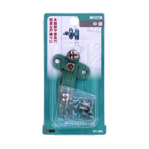 木製扉や家具の簡易な戸締りに受座のネジを締め付けるとバーが固定されます木製扉(主に開き戸)や家具の簡易戸締りに取り付けの際、木部の割れやネジの破損を防ぐためキリで下穴を開けてください。 |