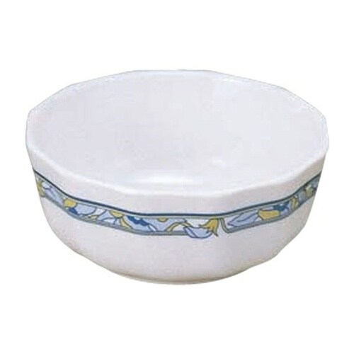 帯状にアレンジされたブルーの花が小粋な印象です。リムがあって持ちやすくスタッキング性抜群です。長く愛されているロングセラー商品です。 |
