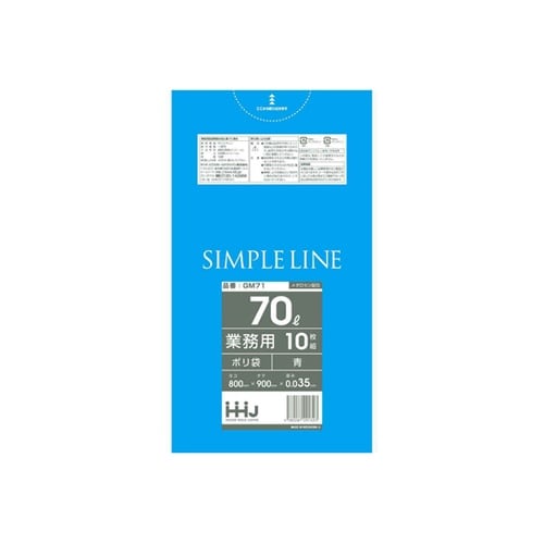青色のポリ袋10枚入りです。1枚あたりの容量は約70Lです。表面がツルツルタイプの袋です。柔らかく伸びやすい素材が使用されており、破れにくいです。 |