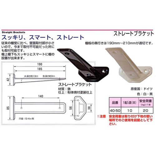 壁面取付部が小さいので今まで取付不可能だった所にも取付け可能です。棚上棚下もスッキリとスマート。耐荷重は取り付け下地の堅い場所でのご使用を前提としてください。 |